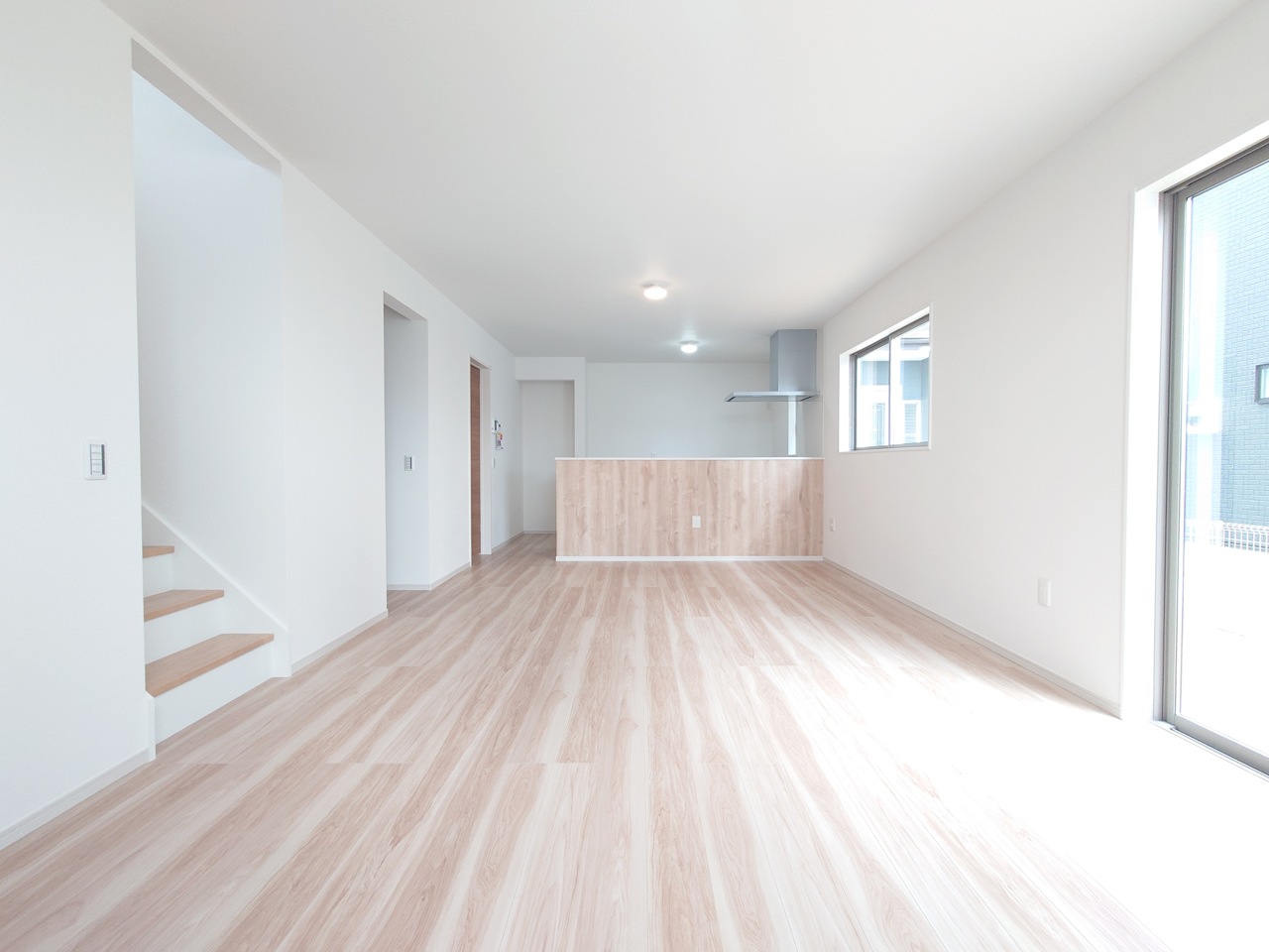 リビング階段の建物は、全居室フローリング仕様で明るく収納付き、シューズクロークやリビング収納、主寝室のウォークインクローゼットなど、とても便利です。