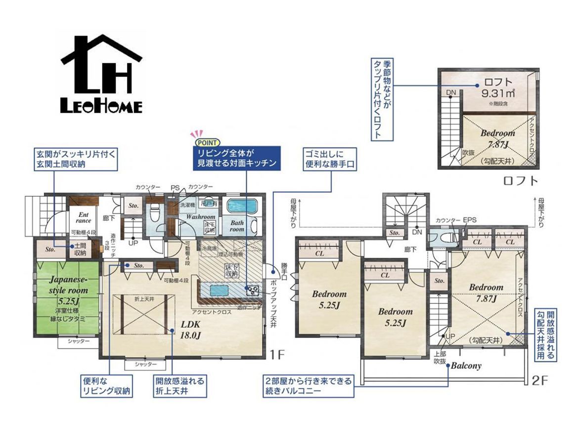 | 間取 | 4LDK (LDK18帖、和室5.2帖、洋室7.8帖、洋室5.2帖、洋室5.2帖) | ||