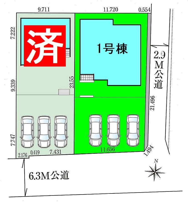 | 接道 | 南側6.3M公道に接道 東側2.9M公道に接道 |