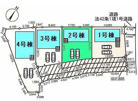 カインズホームまで90m、南側共有道路に面し日当たり良好!駐車スペース楽々2台以上可能です。