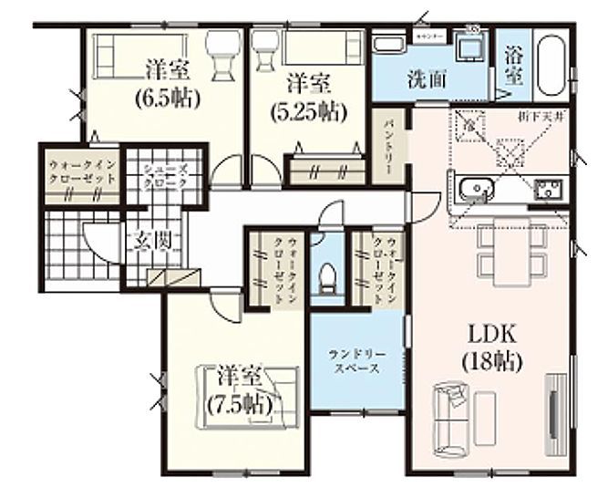 | 間取 | 3SLDK (LDK18帖、洋室7.5帖、洋室6.5帖、洋室5.2帖) | ||