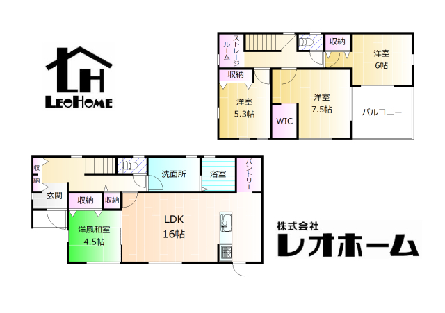 | 間取 | 4LDK (LDK16帖、和室4.5帖、洋室7.5帖、洋室6帖、洋室5.3帖) | ||