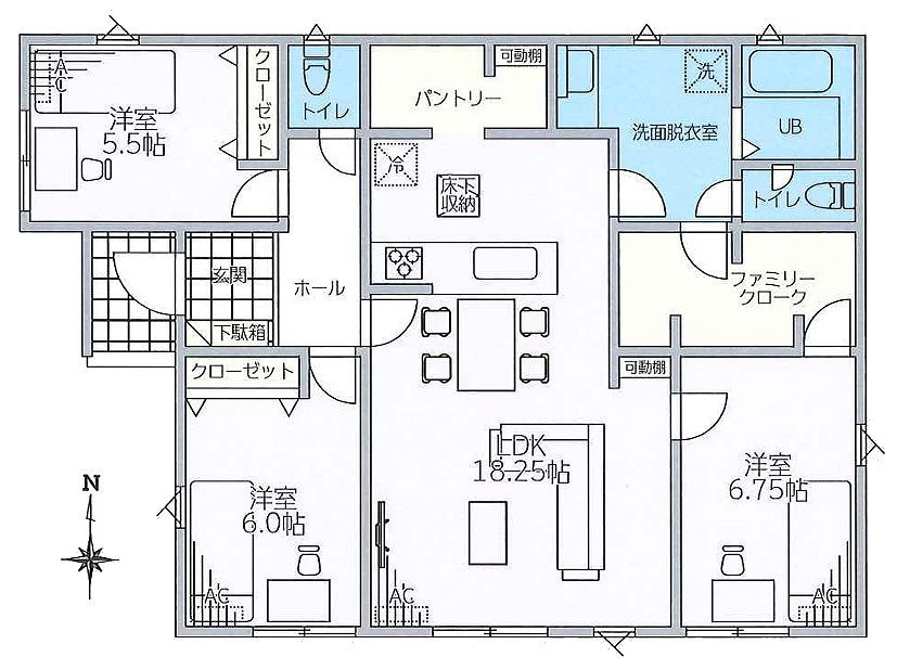 | 間取 | 3LDK (LDK18.2帖、洋室6.7帖、洋室6帖、洋室5.5帖) | ||