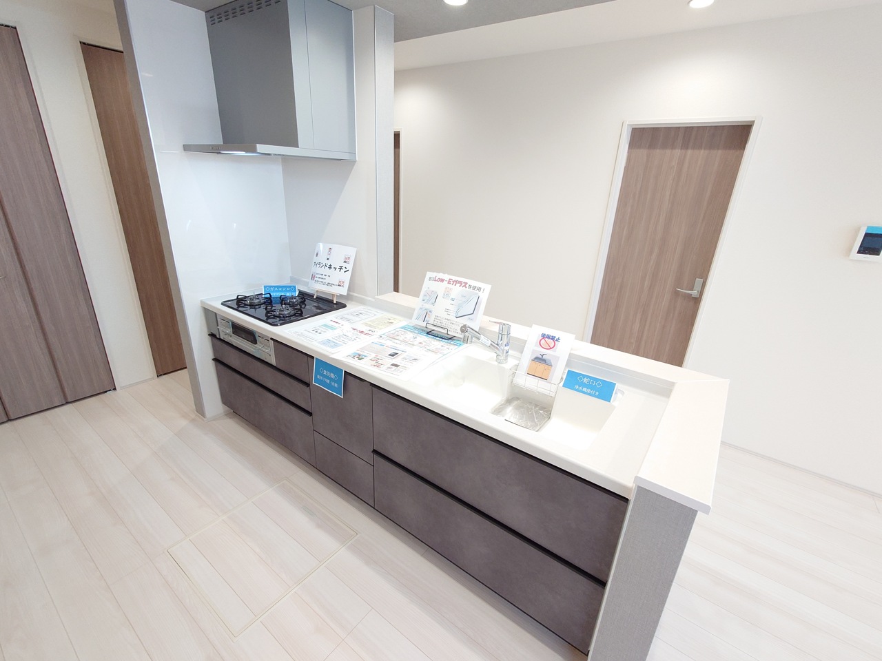 平屋建て建物は、長期優良住宅!耐震等級3などの設計及び建設性能評価、BELS(省エネ)などを取得!LDK広々24.5帖!全居室フローリング仕様で明るく収納付き、とても便利です。