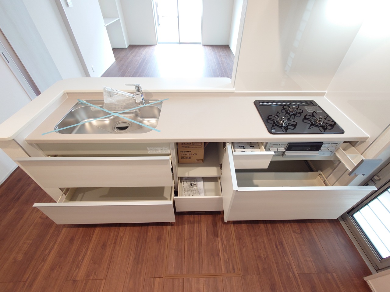 建物は、大型35坪!3LDK耐震(倒壊防止や損傷防止)などの住宅性能評価を取得!全居室フローリング仕様、玄関のシューズクローク、キッチンパントリー、広々したインナーバルコニーなど、便利です。